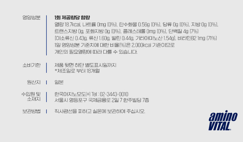 | 아미노바이탈 골드 4000 : 1회 제공량 (1포) 4.7g 18.7kcal |